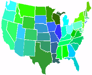 Espera hasta que el mapa se haya cargado. Entonces, mueve tu ratón sobre el mapa para estudiar el efecto de cambio de color.